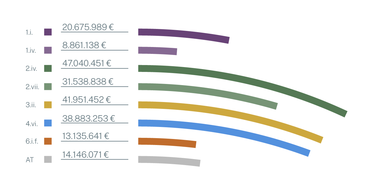 * Total resources (EU contribution + national contribution). The allocation by specific objective and intervention area is indicative (it proportionally takes up the allocation given by the PCT on the EU contribution). Small discrepancies are possible due to rounding.