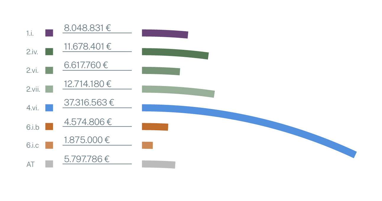 * Total resources (EU contribution + national contribution). The allocation by specific objective and intervention area is indicative (it proportionally takes up the allocation given by the PCT on the EU contribution). Small discrepancies are possible due to rounding.