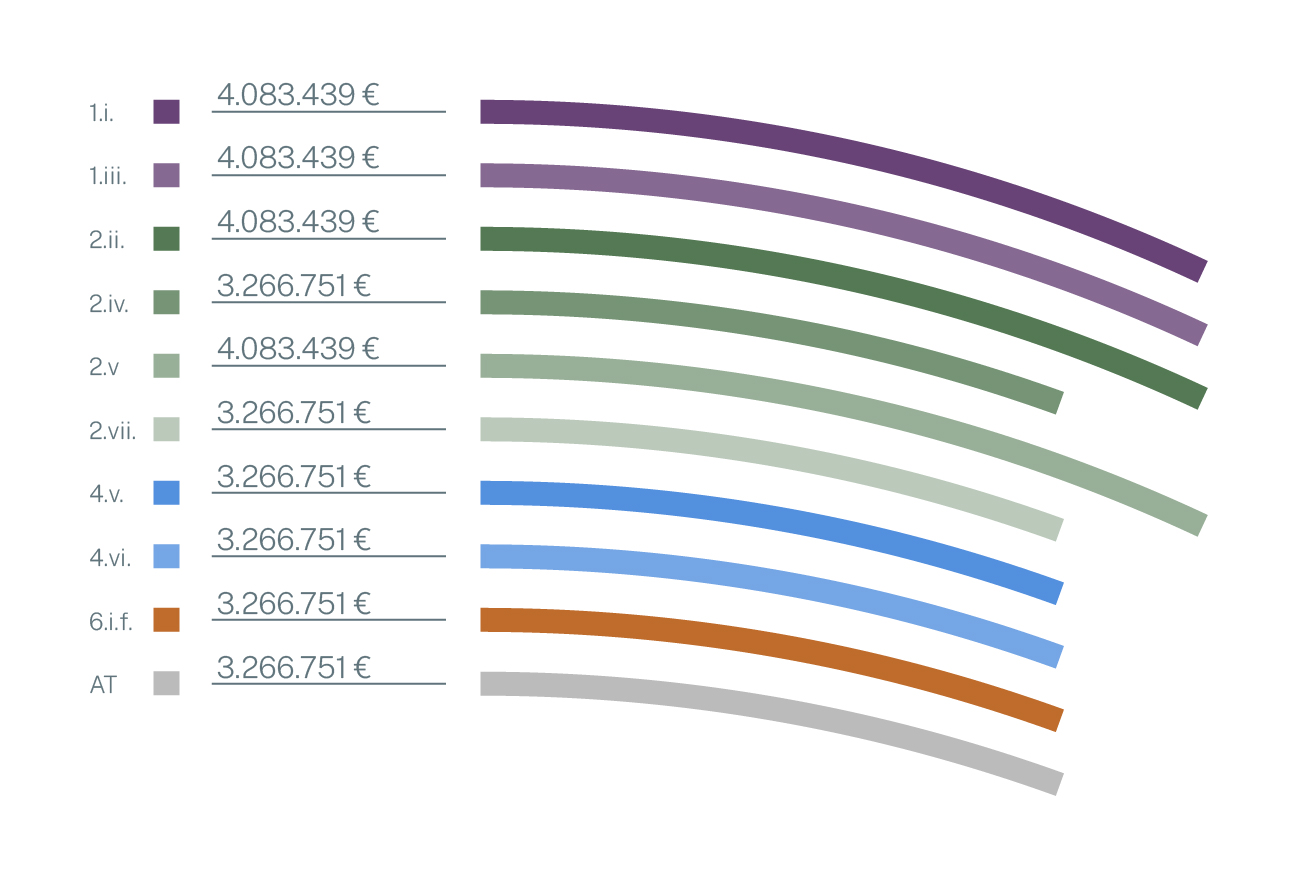 * Total resources (EU contribution + national contribution). The allocation by specific objective and intervention area is indicative (it proportionally takes up the allocation given by the PCT on the EU contribution). Small discrepancies are possible due to rounding.