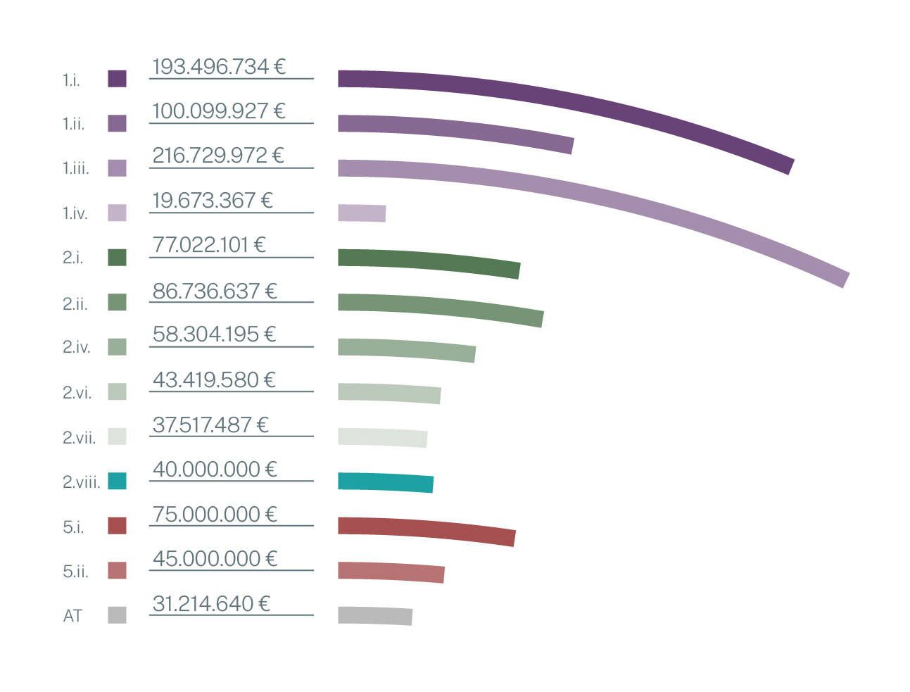 * Ressources totales (contribution de l’UE + contribution nationale). La répartition par objectif spécifique et par domaine d’intervention est indicative (elle reflète proportionnellement la répartition donnée par le POR sur la contribution de l’UE). Des écarts minimes sont possibles en raison des arrondis.