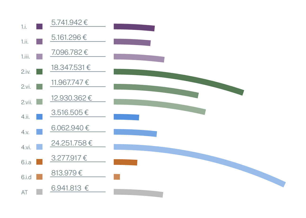 * Ressources totales (contribution de l’UE + contribution nationale). La répartition par objectif spécifique et par domaine politique est indicative (elle reflète proportionnellement la répartition du PCT sur la contribution de l’UE). Des écarts minimes sont possibles en raison des arrondis.