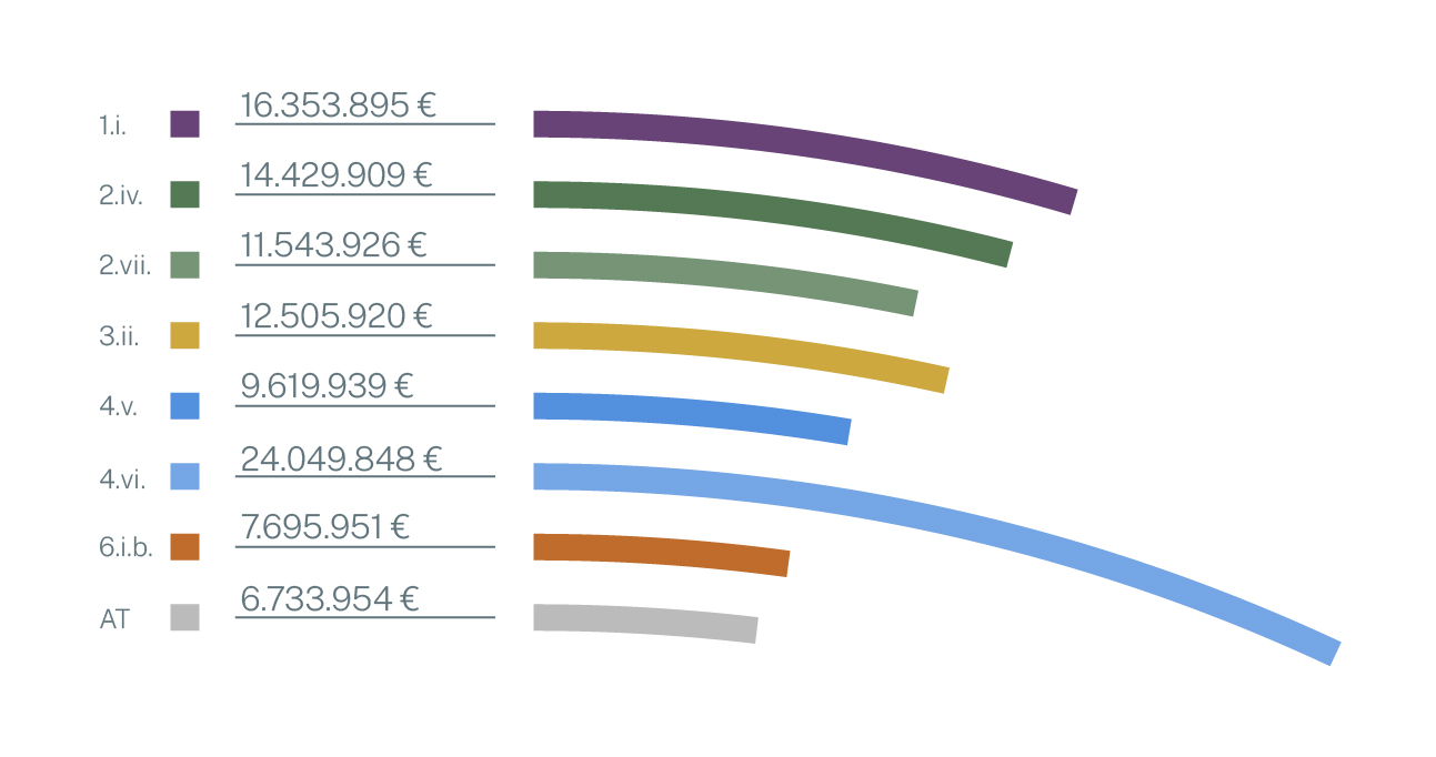* Ressources totales (contribution de l’UE + contribution nationale). La répartition par objectif spécifique et par domaine politique est indicative (elle reflète proportionnellement la répartition du PCT sur la contribution de l’UE). Des écarts minimes sont possibles en raison des arrondis.