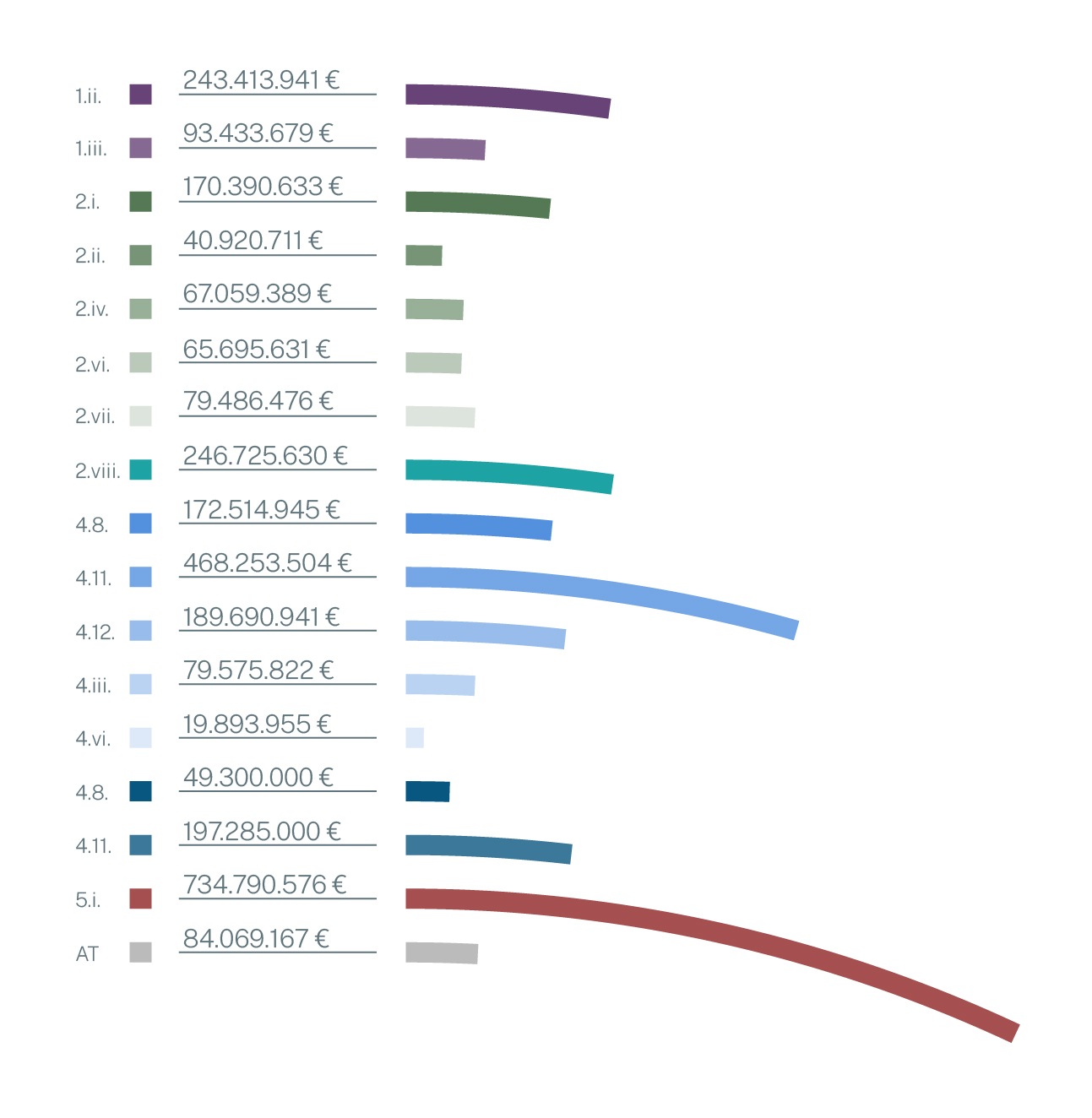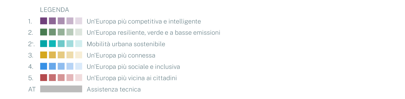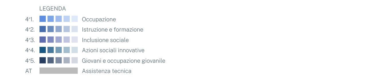 * Risorse totali (contributo dell’UE + contributo nazionale). L’allocazione per obiettivo specifico e settore d’intervento è indicativa (riprende proporzionalmente l’allocazione data dal PON sul contributo dell’UE). Sono possibili piccole discrepanze dovute ad arrotondamenti.