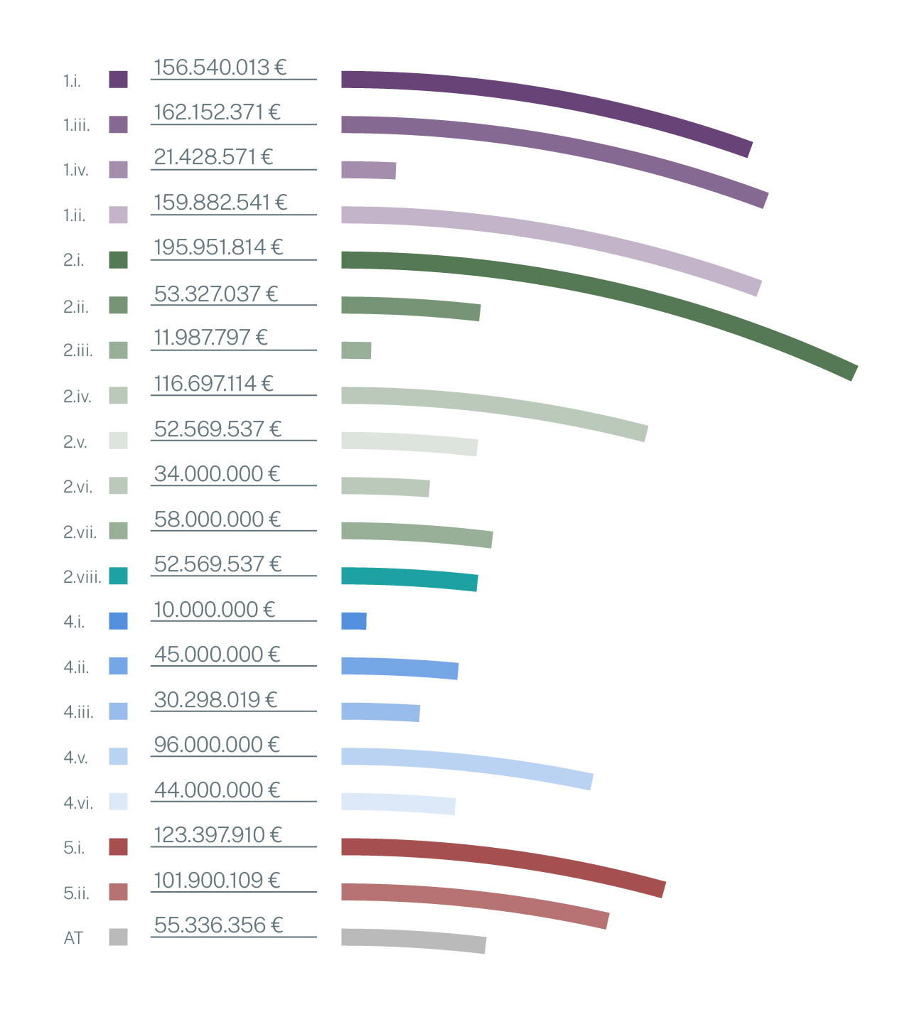 * Risorse totali (contributo dell’UE + contributo nazionale). L’allocazione per obiettivo specifico e settore d’intervento è indicativa (riprende proporzionalmente l’allocazione data dal POR sul contributo dell’UE). Sono possibili piccole discrepanze dovute ad arrotondamenti.