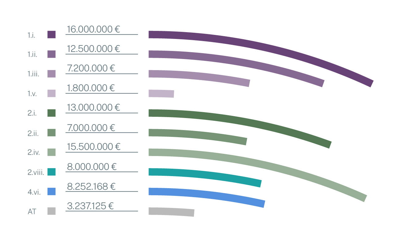 * Risorse totali (contributo dell’UE + contributo nazionale). L’allocazione per obiettivo specifico e settore d’intervento è indicativa (riprende proporzionalmente l’allocazione data dal POR sul contributo dell’UE). Sono possibili piccole discrepanze dovute ad arrotondamenti.