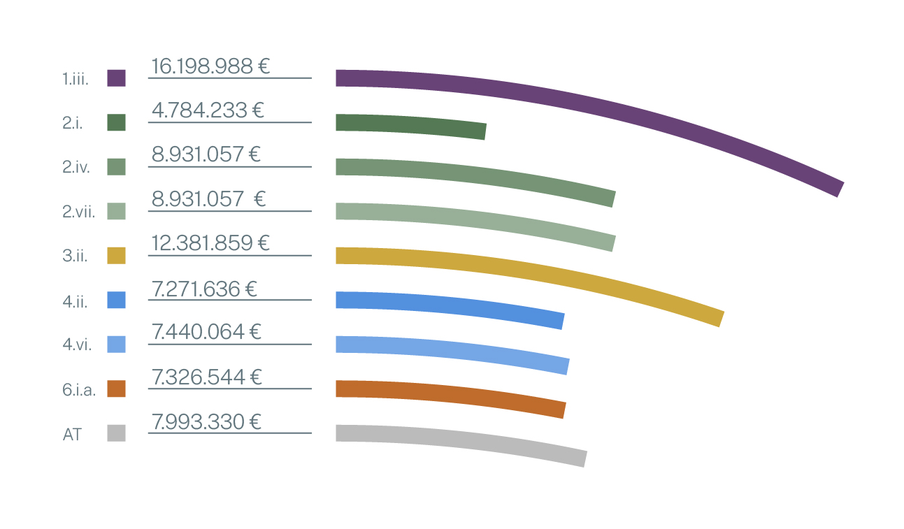 * Risorse totali (contributo dell’UE + contributo nazionale). L’allocazione per obiettivo specifico e settore d’intervento è indicativa (riprende proporzionalmente l’allocazione data dal PCT sul contributo dell’UE). Sono possibili piccole discrepanze dovute ad arrotondamenti.