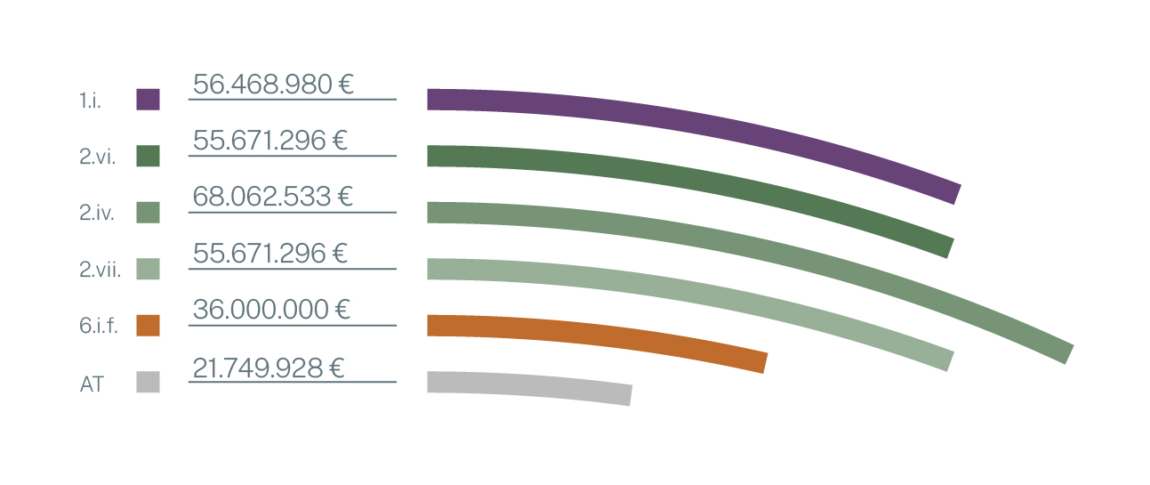 * Risorse totali (contributo dell’UE + contributo nazionale). L’allocazione per obiettivo specifico e settore d’intervento è indicativa (riprende proporzionalmente l’allocazione data dal PCT sul contributo dell’UE). Sono possibili piccole discrepanze dovute ad arrotondamenti.